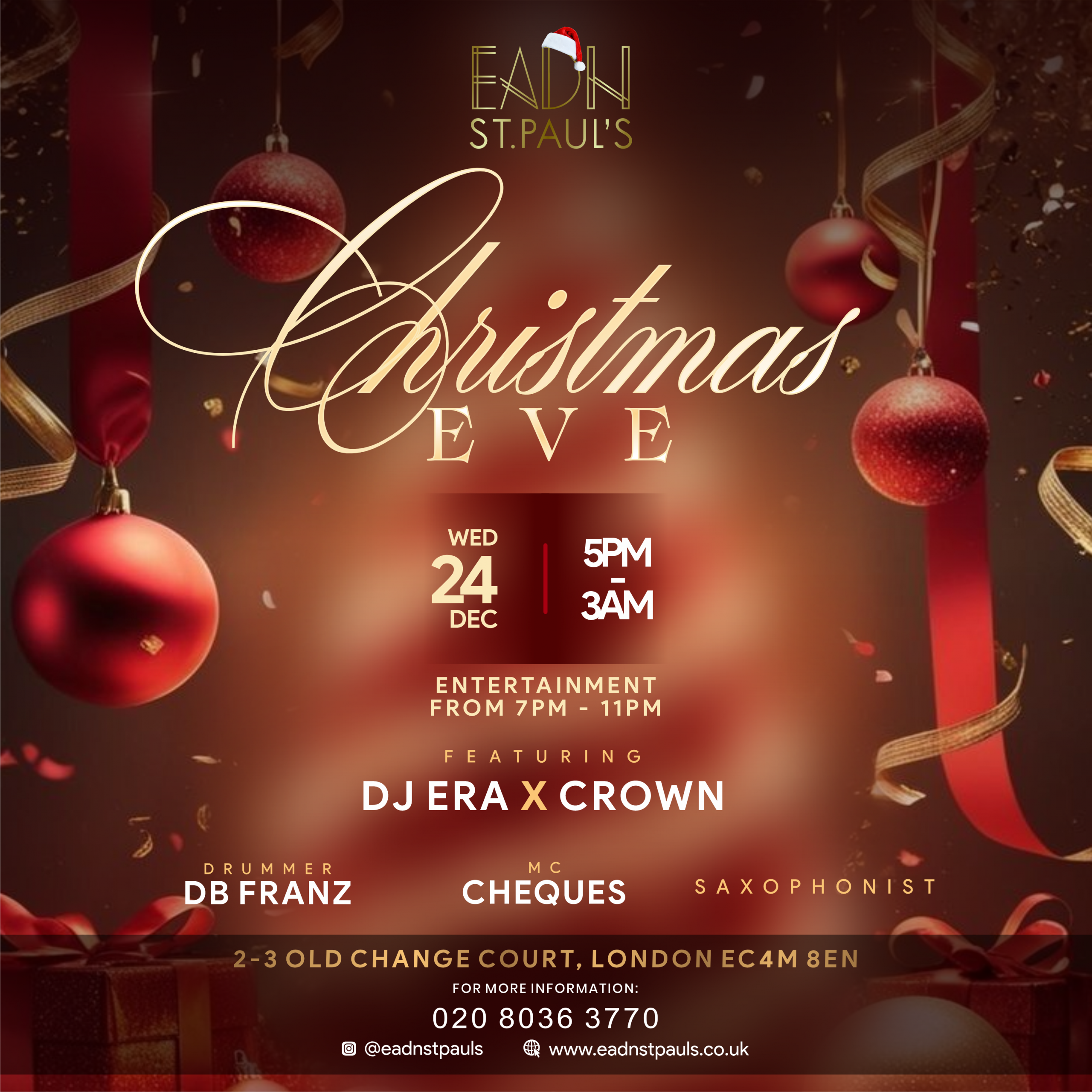 Good food, great music and festive vibes all night. Celebrate the night before Christmas in style.