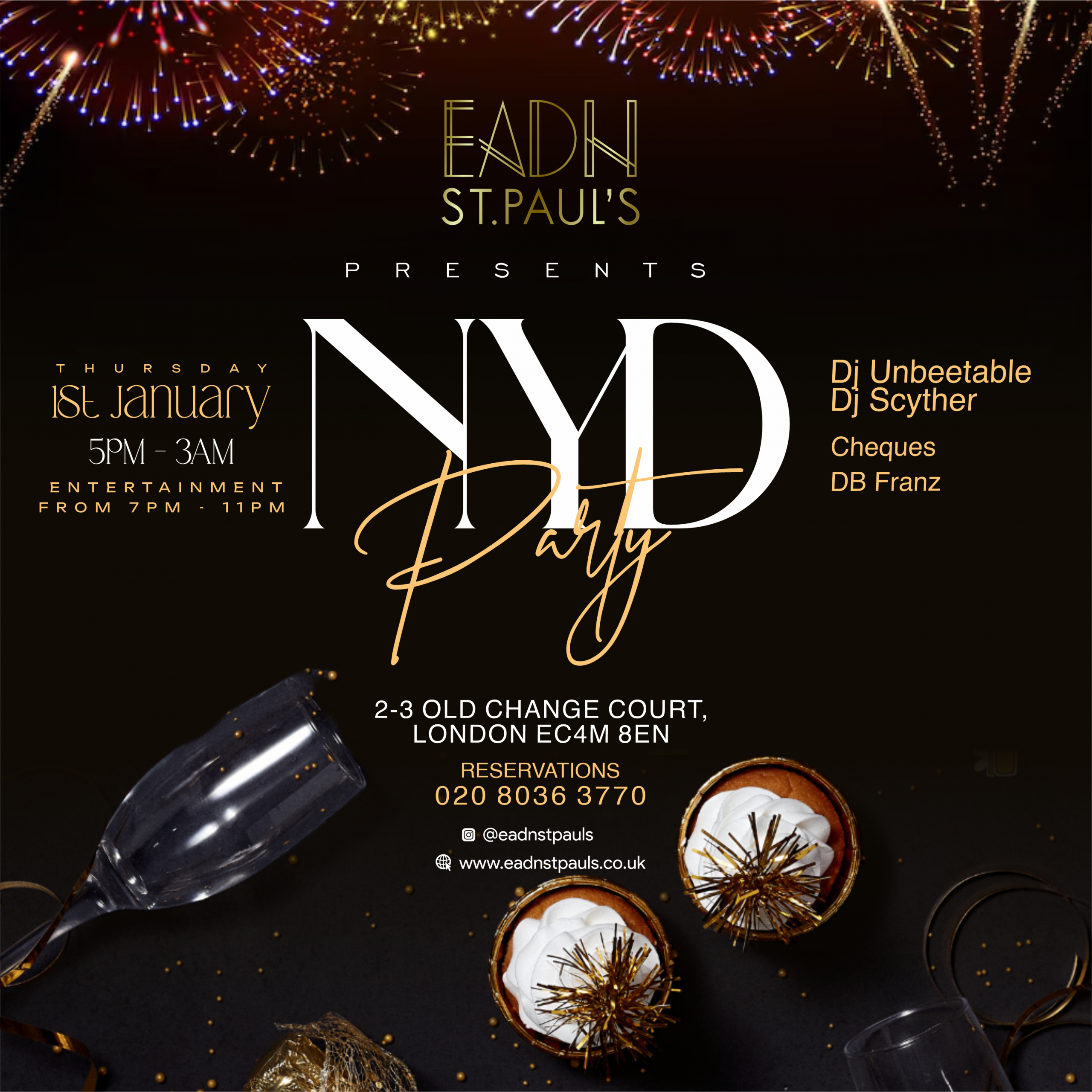 Celebrate the first day of 2026 with signature dishes, smooth beats, and Eadn’s iconic party atmosphere.